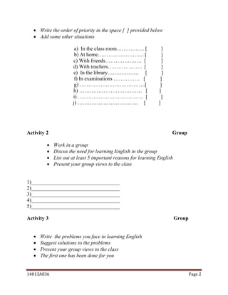 I Year Diploma A P English Course